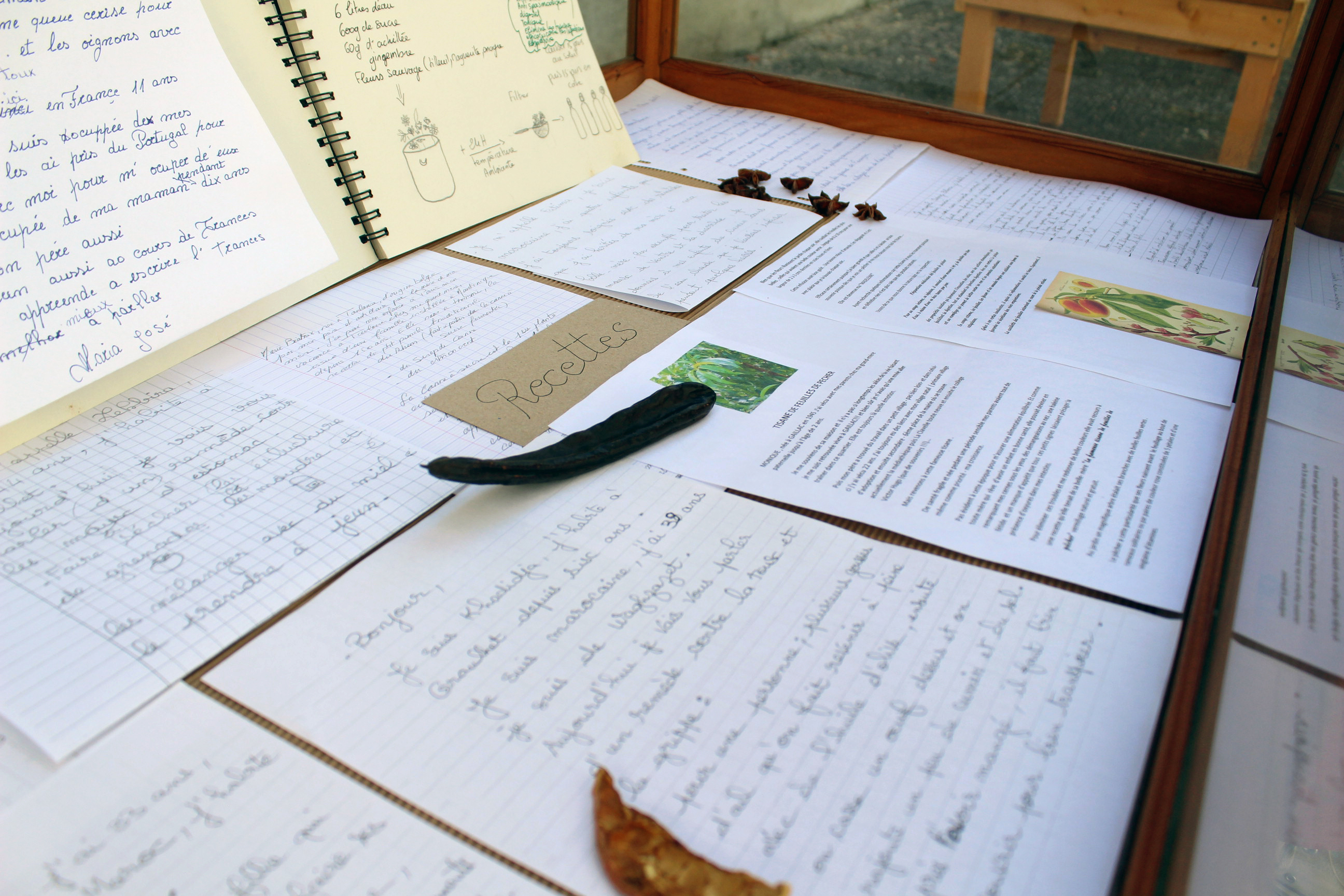 Les participant.es ont travaillé sur des recettes transmises à partir de leurs héritages : des « recettes de grands-mères ». Cette démarche a mobilisé la créativité, le partage sous forme d’ateliers d’écriture, d’ateliers radiophoniques, de découverte de la pharmacopée en balades, de teinture végétales, de création d’herbiers pour nous raconter l’histoire de la relation aux plantes. Elle a donnée lieu à une exposition à la maison des métiers du cuir à Graulhet, ainsi que la création d’éléments scénographiques pour la création/célébration de l’entrée dans l’été, « Litha – a la raja del solelh », troisième volet du cycle Pando.