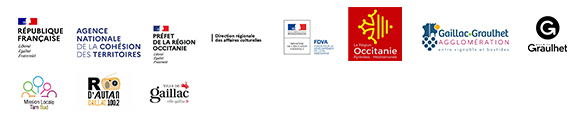 AVEC LE SOUTIEN DE : L’ANCT (L’Agence nationale de cohésion des territoires), Le FDVA (Fonds pour le développement de la vie Associative), La DRAC Occitanie, La région Occitanie, L’agglomération Gaillac-Graulhet