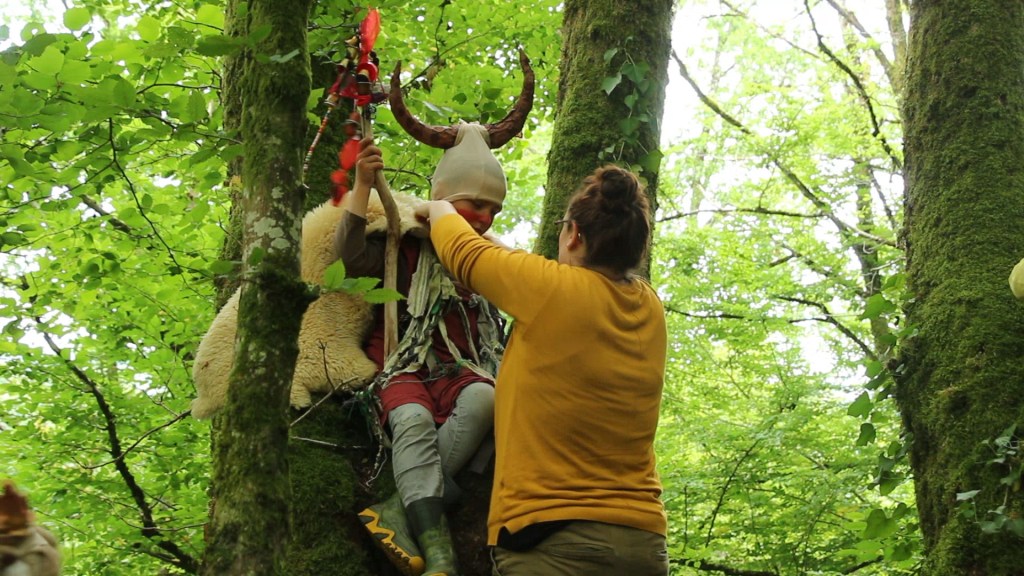 « Ceux qui vivent sur les bords d’une belle rivière »[1] est la restitution d’une résidence mission menée cette année par la cie Nanaqui dans le nord du Lot. Nous avons choisi ce titre/nom, car il a le charme et la force, quasi poétiques, de désigner en même temps un territoire et ses habitants, le lien qui les unit dans ce rapport à la nature. Cette création a été réalisée avec la participation active d’une centaine d’habitant.e.s de tous âges et de tous milieux. Création de costumes, d’instruments, d’un arbre-dragon, cris, bruitages, chant d’animaux, polyphonies, poèmes, témoignages, captation sonores, interview… tout ce que vous allez voir et entendre est le fruit d’une étroite collaboration entre les participant.e.s et les artistes de la compagnie. L’évocation des paysages et du patrimoine de ce territoire sollicite immédiatement un imaginaire qui nous connecte aux forces de la nature : telluriques, aquatiques, animales … mais aussi à un passé qui fait figure de mystère, celui des celtes, celui de la préhistoire. C’est à partir de cette question de l’imaginaire propre à ce territoire, de la transmission de ce rapport à la nature au fil de l’eau et gravée dans les pierres, que nous avons imaginé et conduit cette résidence et cette restitution qui mêle création vidéo, création sonore, chant et théâtre, où l’on voit danser les esprits de la forêt où l’on entend une vraie sorcière, où l’on croise un faux ermite…