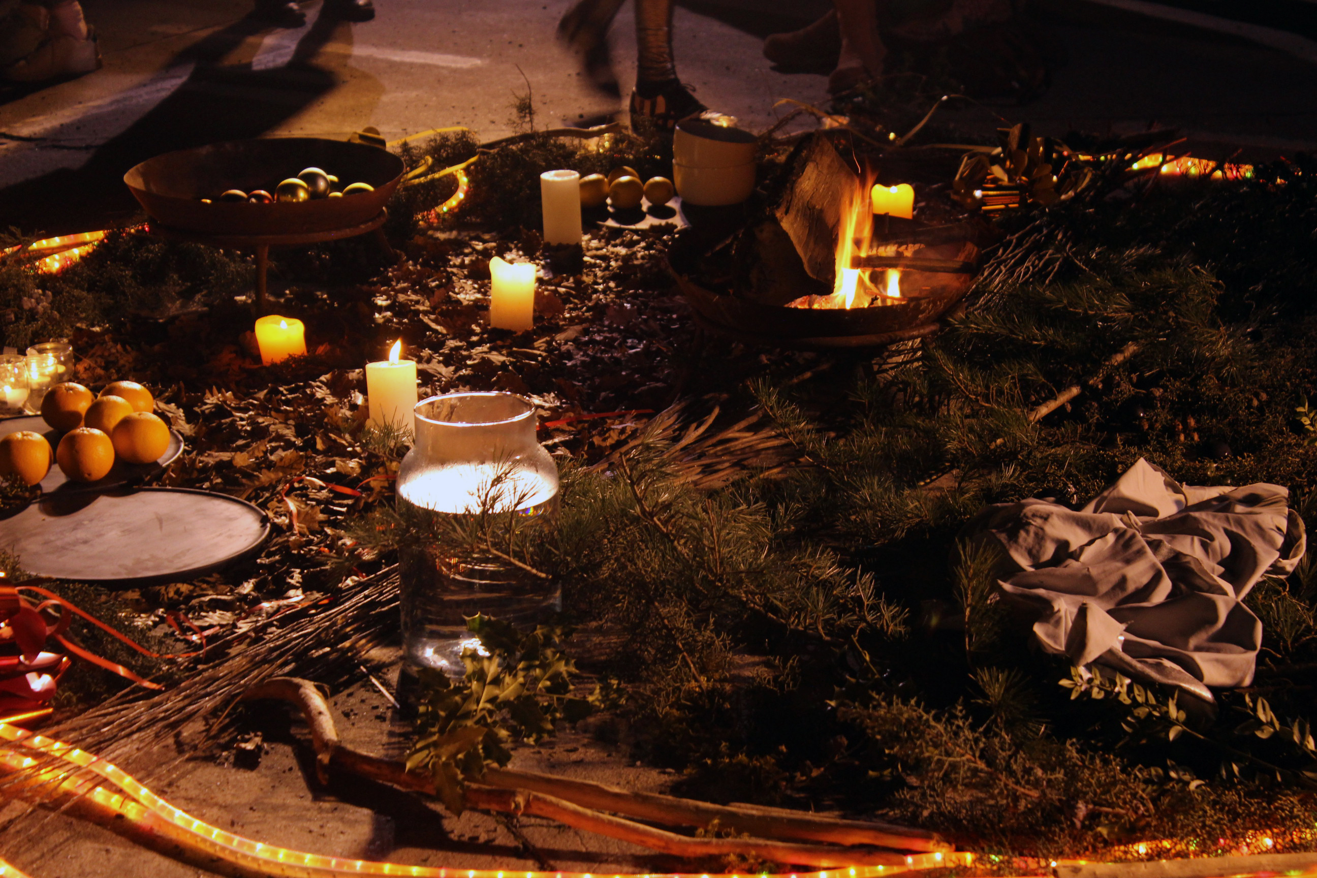 Le rituel de célébration du solstice d’hiver a été proposé par le duo de clownes – sorcières Azterg et Bouchon : Les To be free or not to be.