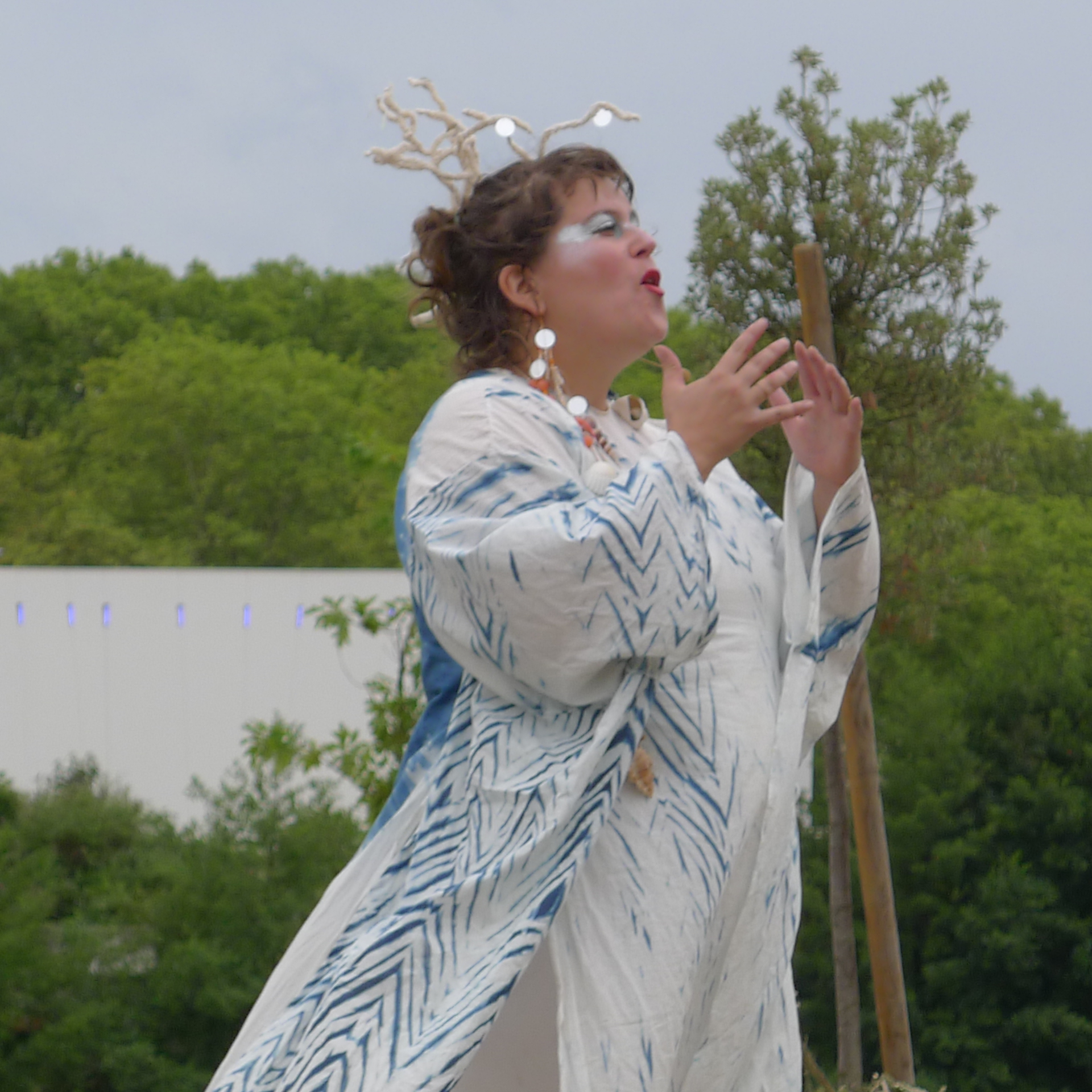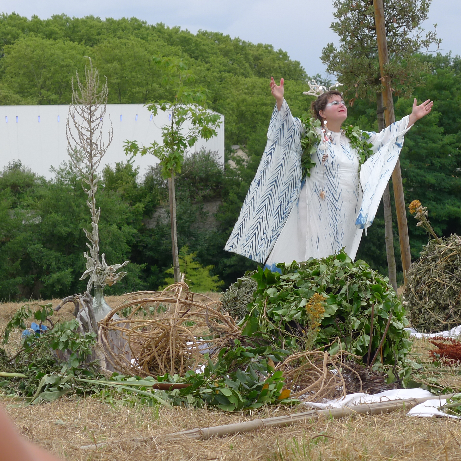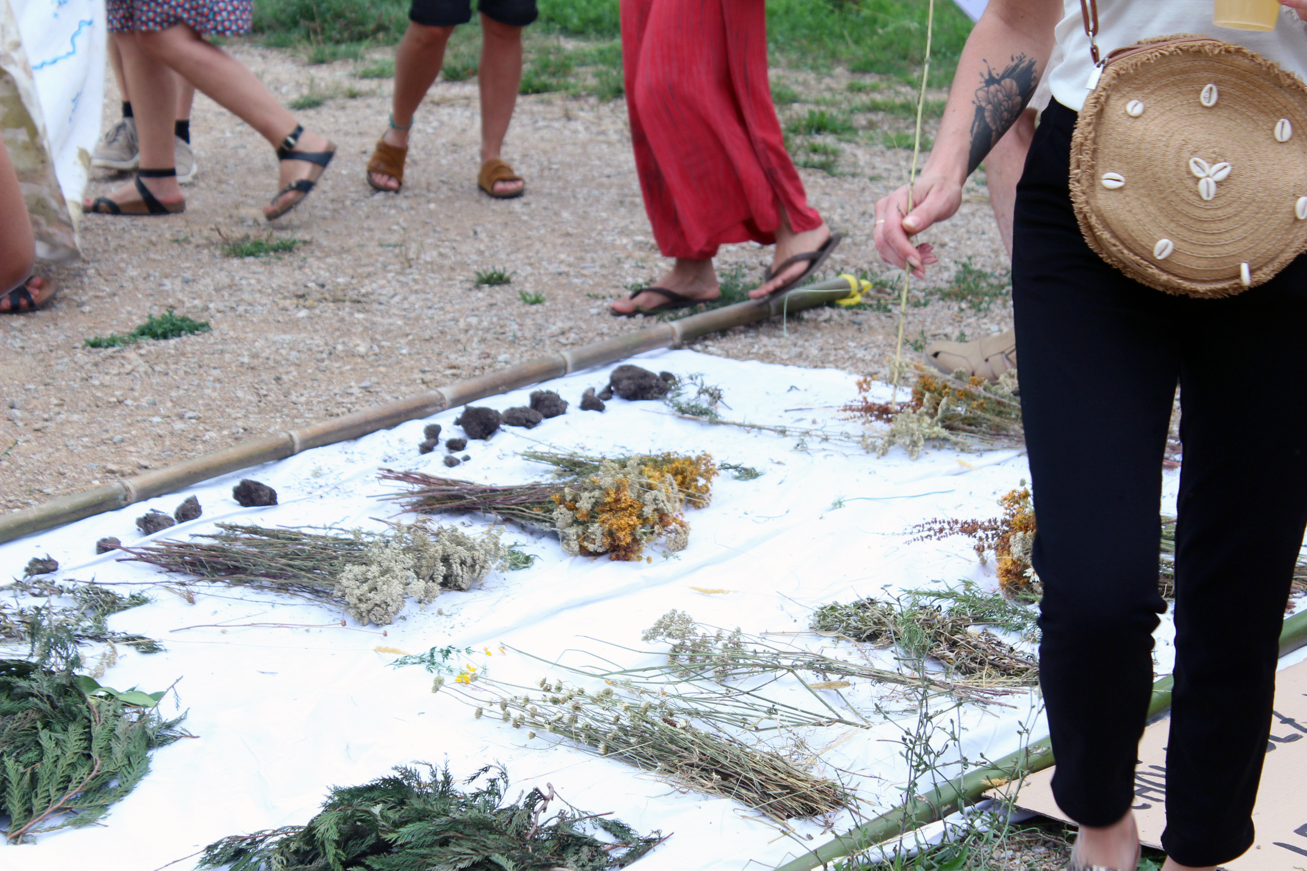 Nous avons célébré l’énergie créatrice de toute vie : celle des étoiles où les esprits des lieux et du soleil sont venus nous visiter et nous entraîner dans la grande ronde du cycle de la vie au rythme de la musique et de la voix envoûtantes de Claire Gimatt. Nous avons terminé par la dégustation des plats dédiés au soleil préparés par Gaëlle Ollive et les participant·es aux ateliers.